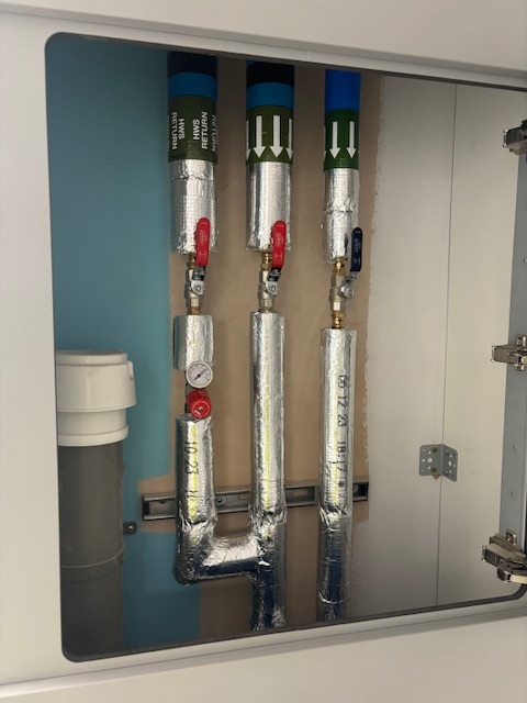 We were employed to install the LTHW, Chilled water, Above ground drainage and the hot & cold water services. The majority of the heating requirement were by high level radiant panels and also MVHR units. The domestic Hot and cold water services supplied clincal wash hand basins, toilet areas, ensuite shower rooms and staff areas.