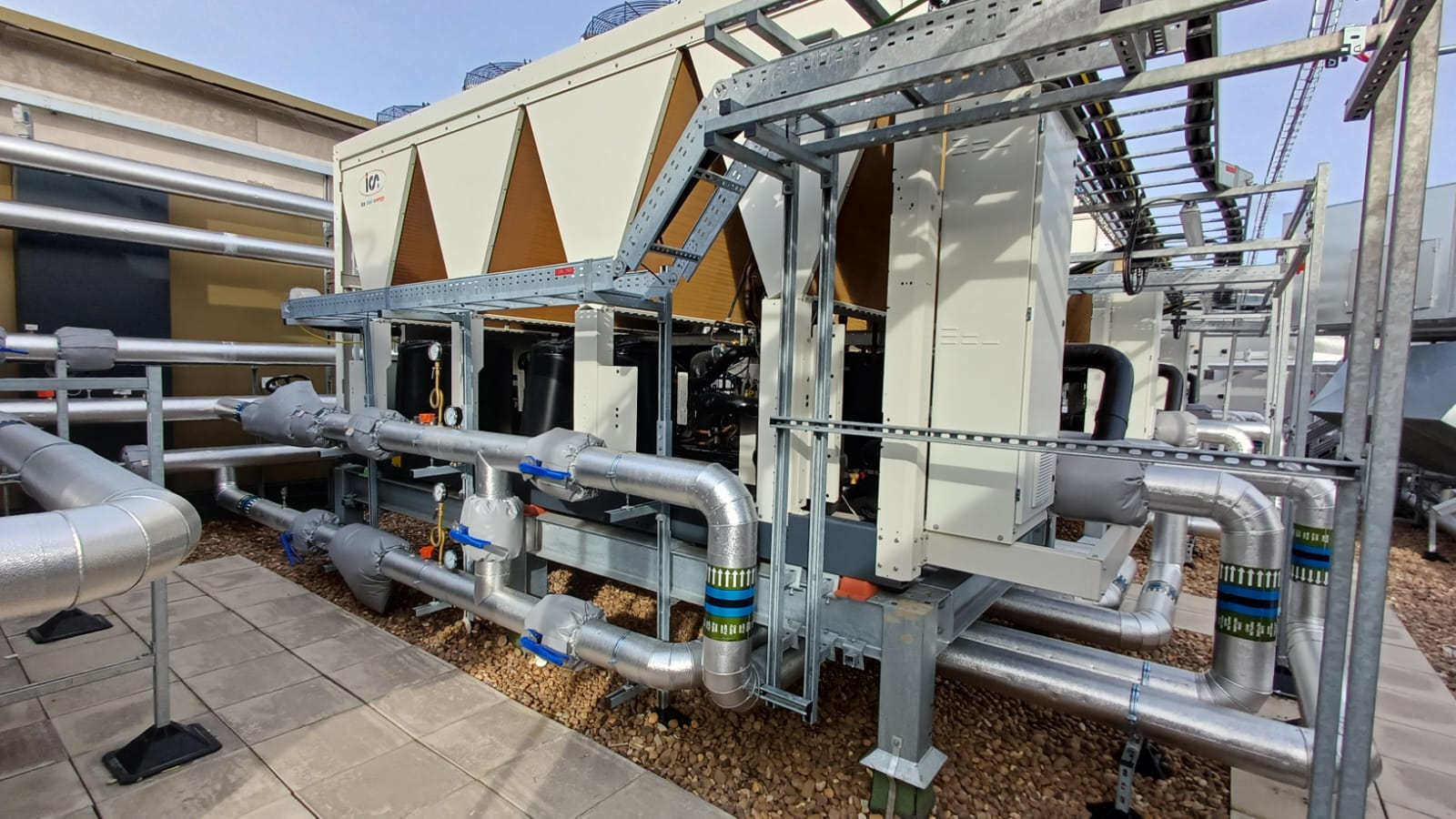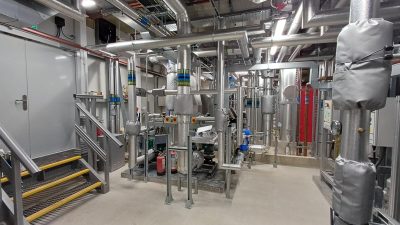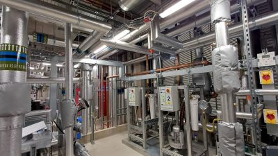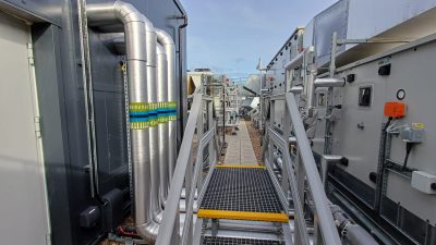We were employed to undertake the installation of the LTHW and chilled water systems located in the roof top plantroom and roof. The mechanical systems have been installed in pegler crimp. There were various sizes of pipework installed, ranging from 15mm upto 167mm. Also we prefabricated element of the project in our bespoke facility at our head office, this enabled us to limit the amount of fittings used and keep with in the constraints of the limited space. The project was challenging due to the contraints of the plantroom and the amount of plant and equipment installed in the area.We also installed the infrastructure pipework within the verticle riser throughout the building. This pipework was also prefabricated in our bespoke facility in Doncaster. The pipework was mounted on a unistrut frame system, thus reducing the installation time on site.